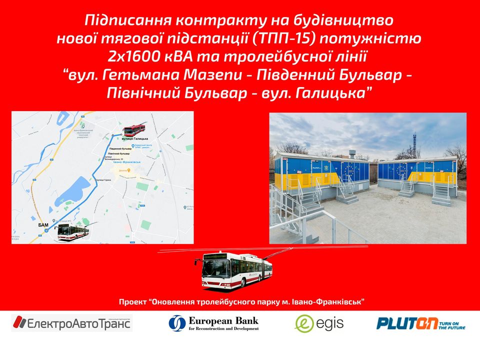 15 вересня підписано угоду на «Будівництво нової тягової підстанції (ТПП-15) потужністю 2х1600 кВА та тролейбусної лінії «вул. Гетьмана Мазепи - Південний Бульвар - Північний Бульвар.»